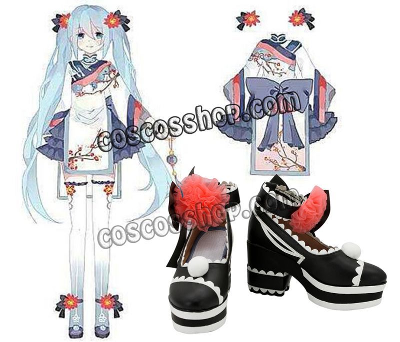 VOCALOID ボーカロイド 梅ミク 初音ミク風 コスプレ靴 ブーツ[Y2664]
